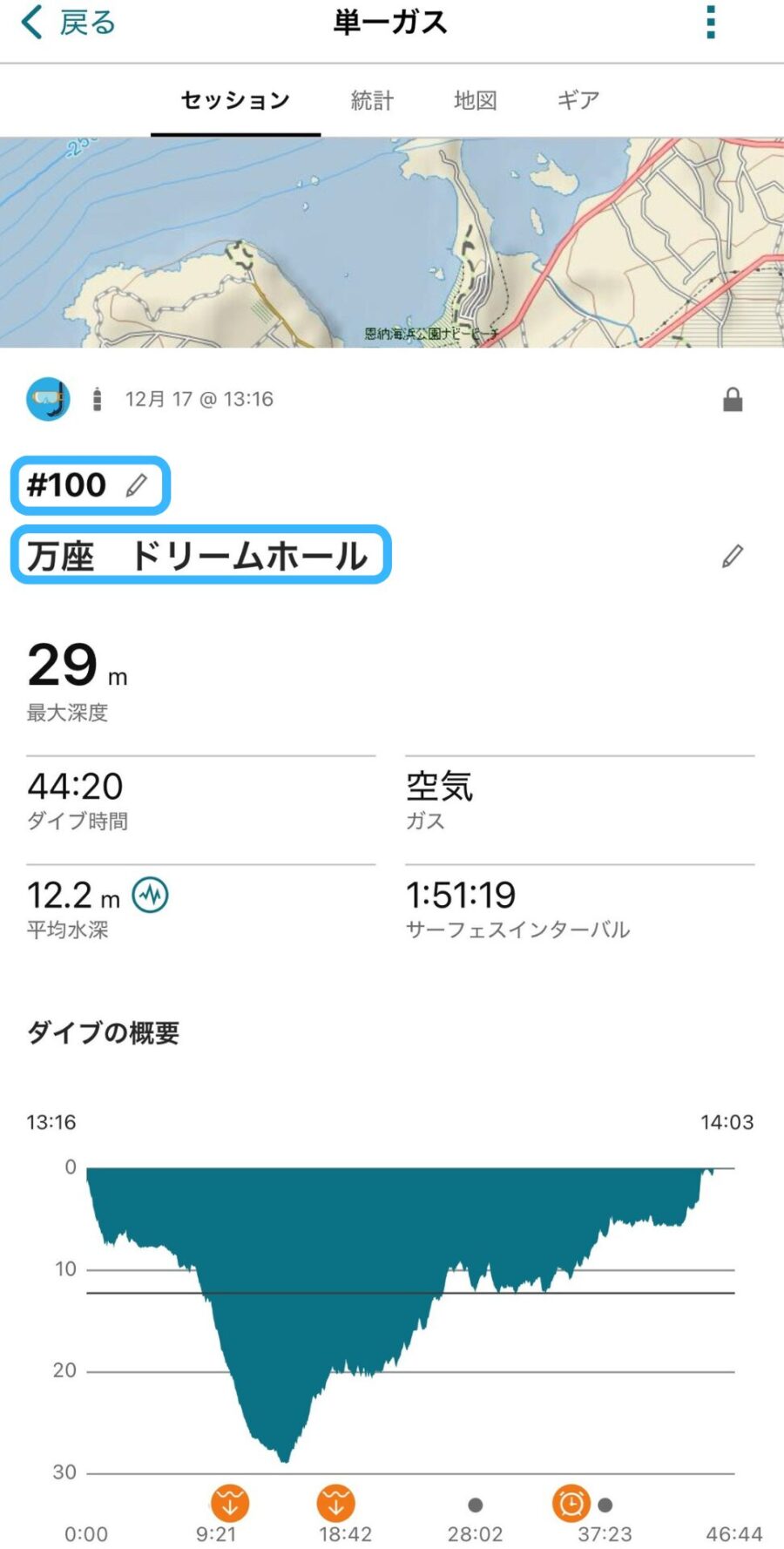 今回一番見たかった水中表示は黒ベースに発色した白文字がとっても見やすかったです。