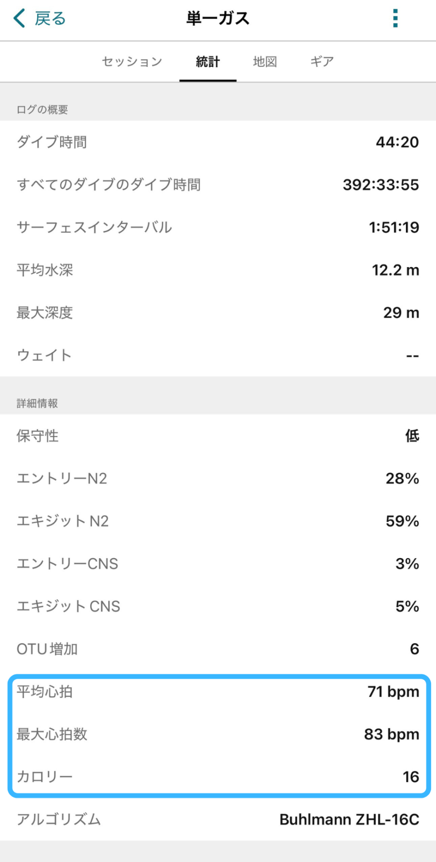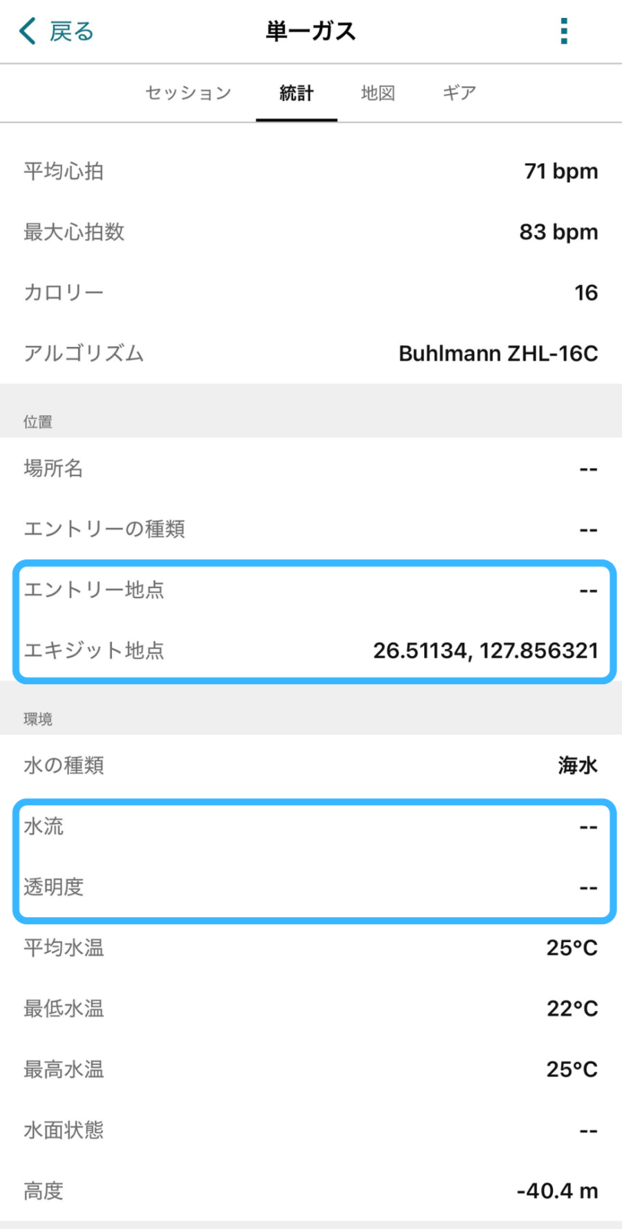 5. ダイビング後の画面で体内窒素排出時間が見れない