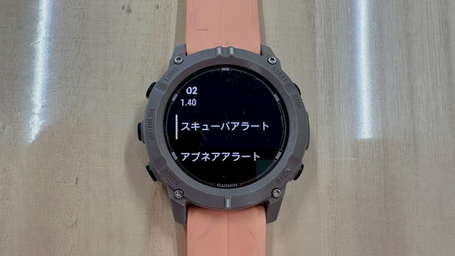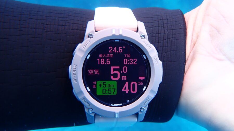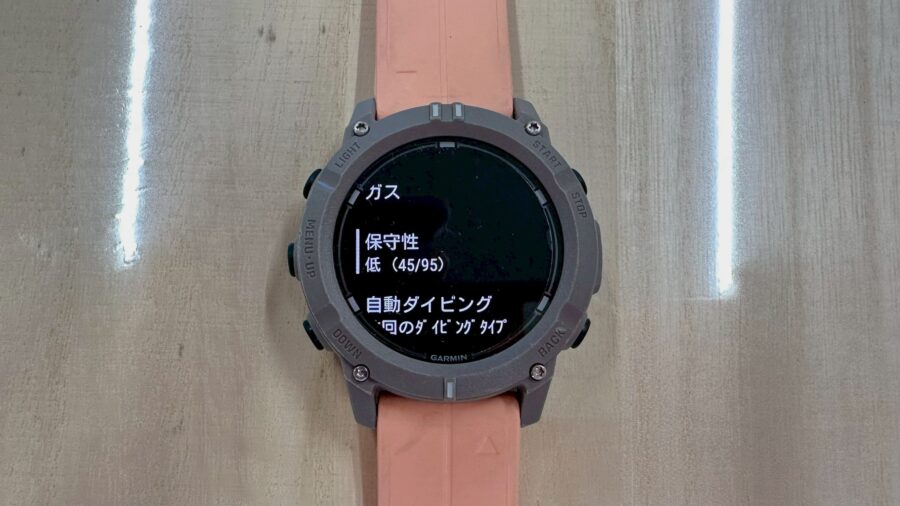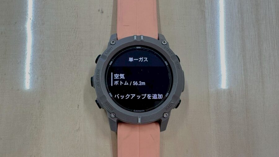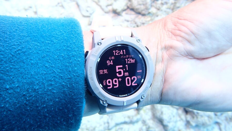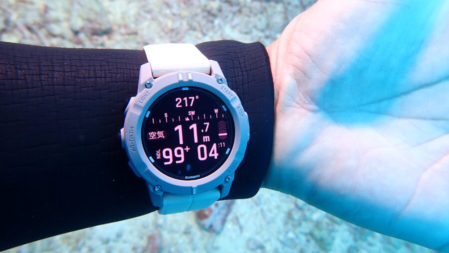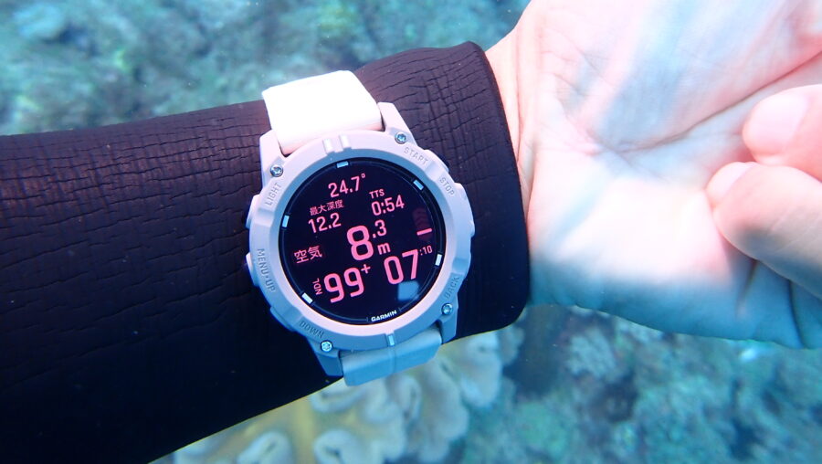 GARMINは表示や操作方法が通常のダイブコンピュータと少し違い、初めは戸惑うこともありますが、触っていくと操作方法にも慣れて、使いやすく感じました。