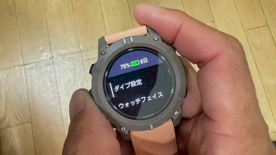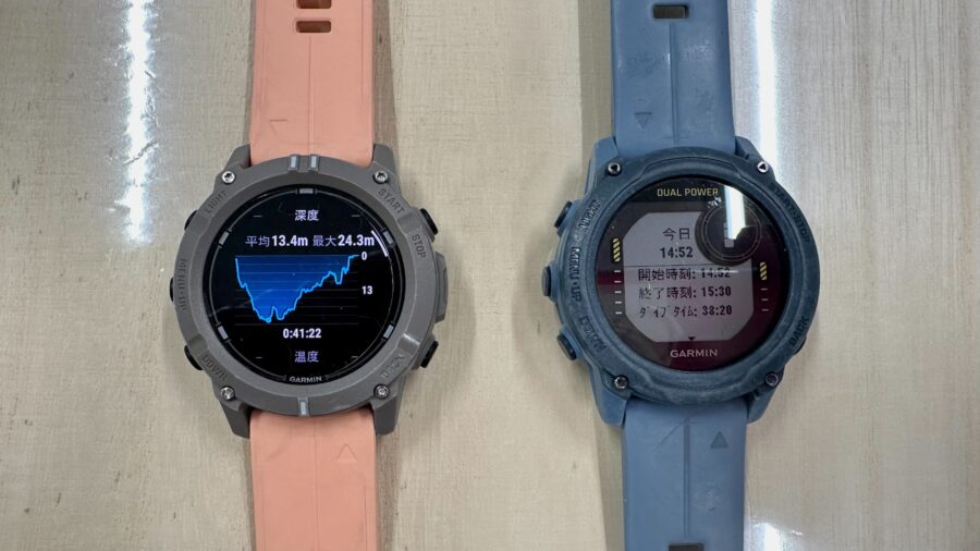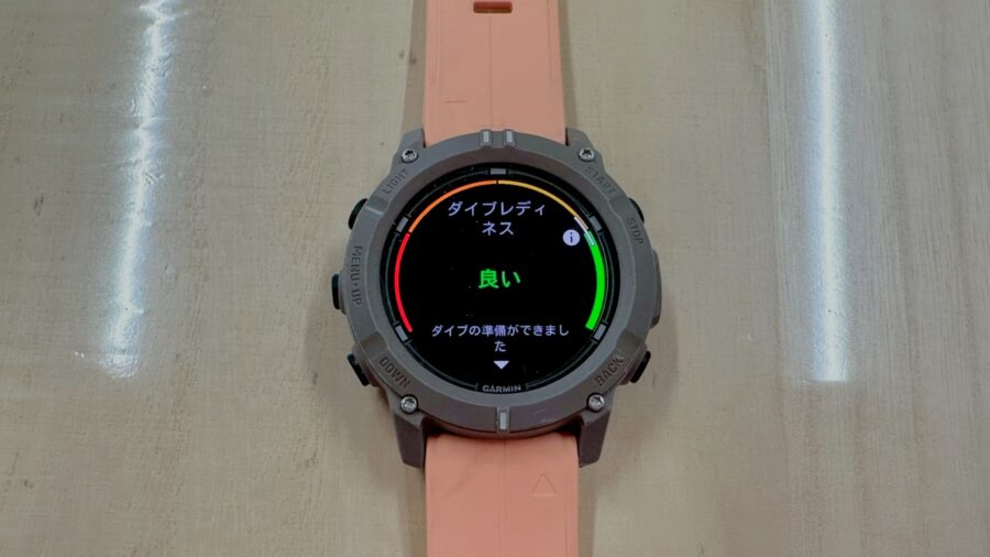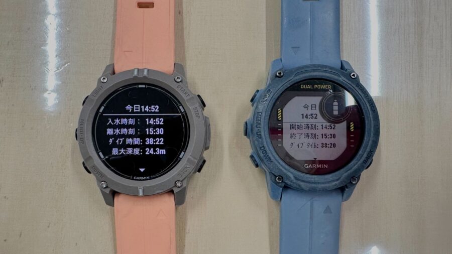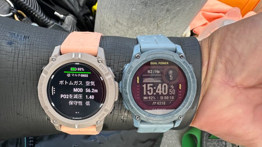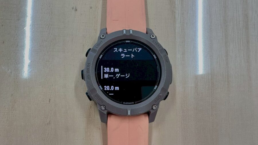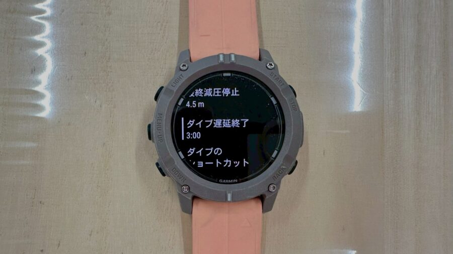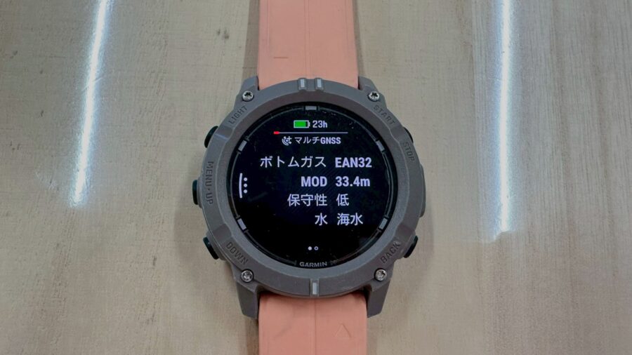 GARMINは表示や操作方法が通常のダイブコンピュータと少し違い、初めは戸惑うこともありますが、触っていくと操作方法にも慣れて、使いやすく感じました。