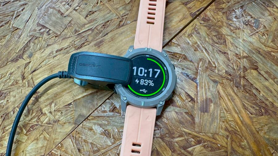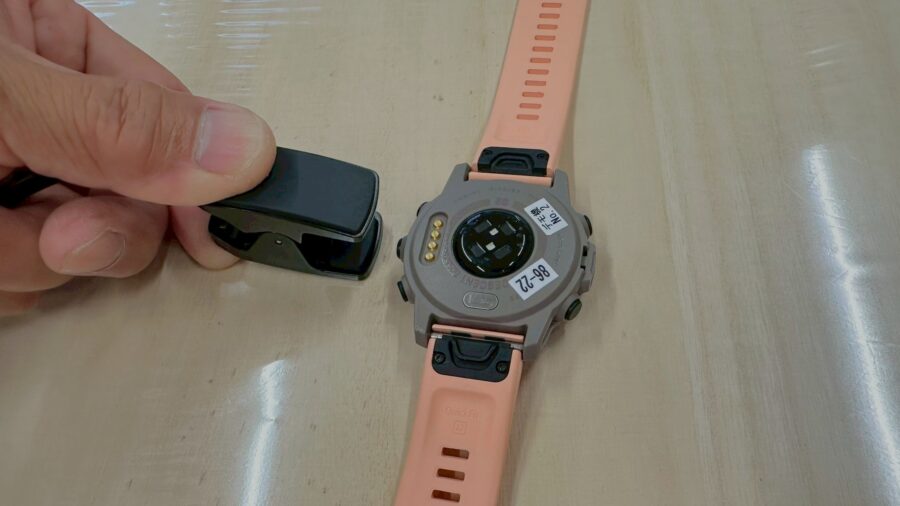 水中でも見やすく、陸ではタッチパネル操作も可能ですが、ソーラー充電機能はなくなり、充電式のみとなりました。
