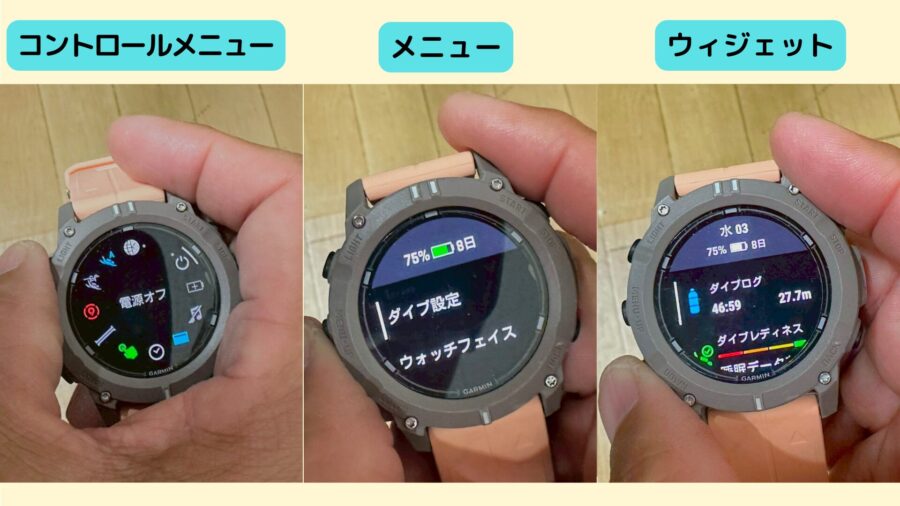 ダイビング中に確認する機能は3つだけで大丈夫です。